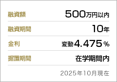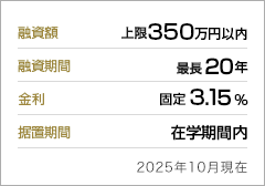 固定低金利で、学費以外(受験にかかった費用・入寮費・定期代など)にもご利用頂けます。