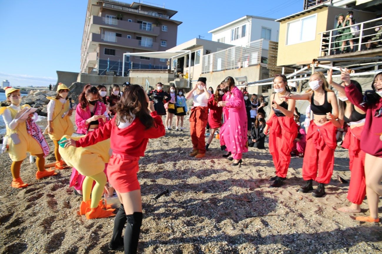まず砂浜という足元の悪い中で10回回るところがかなり難しいようで、ここでこけてしまう生徒が続出でした。